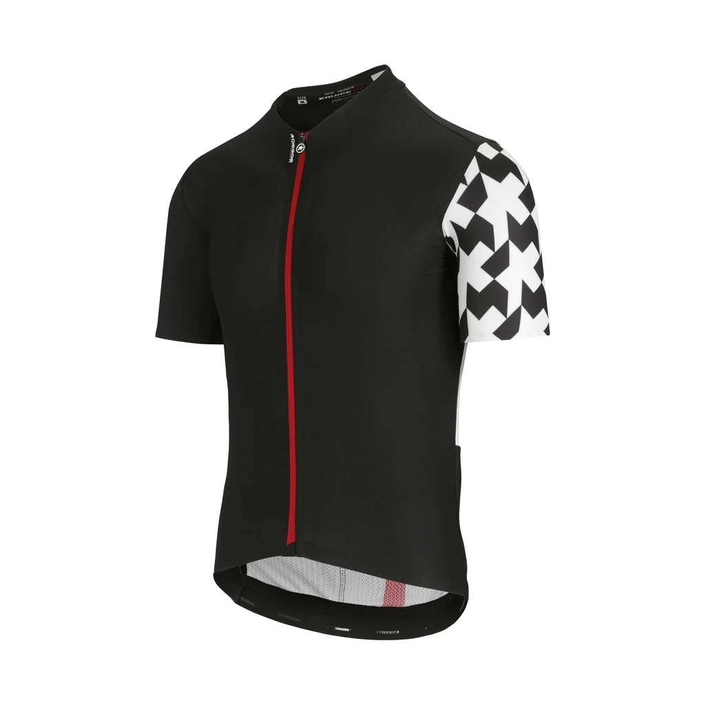 Le maillot à manches courtes pour homme ASSOS Equipe RS Aero SS Jersey, ici présenté en noir, est conçu pour le cyclisme.