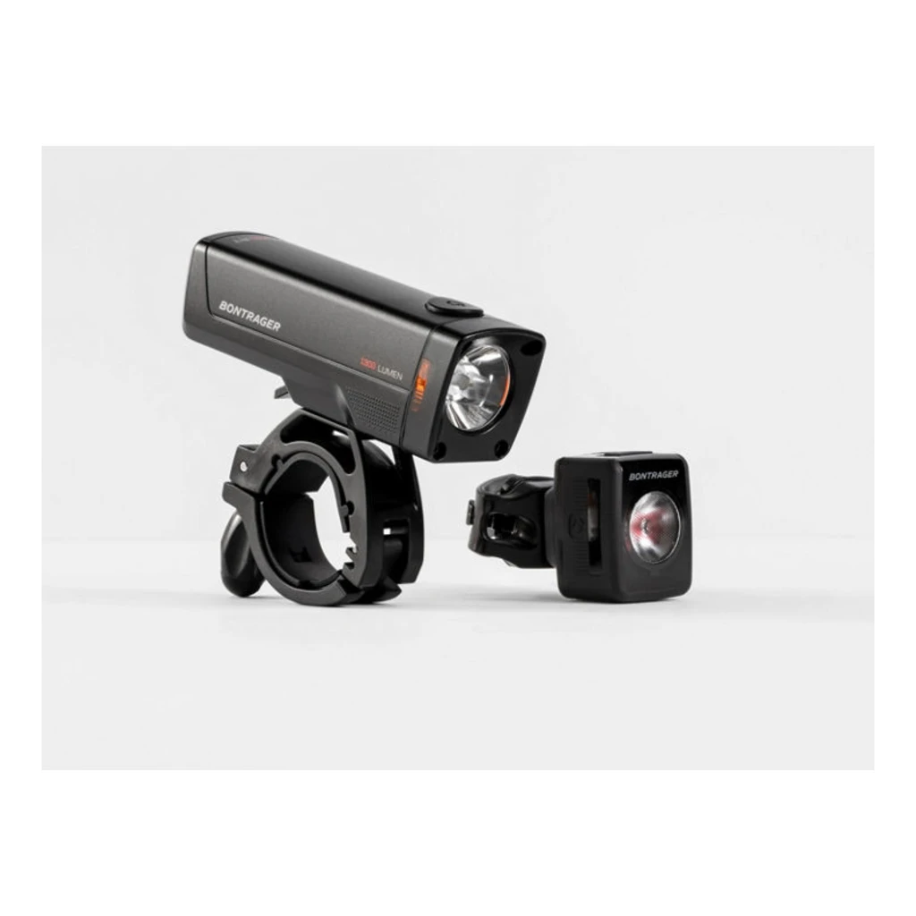 L’ensemble d’Ă©clairage Bontrager Ion 200 RT/Flare RT rechargeable augmente votre sĂ©curitĂ© lorsque vous roulez.