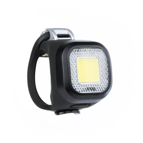 Avec un poids de seulement 18 grammes l’éclairage avant Blinder Mini s’attache facilement à votre cintre sans outil et se recharge via un port USB.