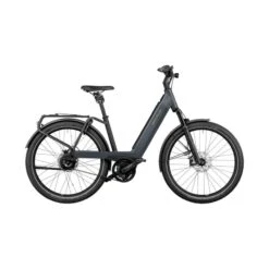 Le Nevo3Gt Vario de la marque Riese & Muller, ici décliné en bleu anthracite est un vélo de ville à assistance électrique conçu pour vos déplacements quotidiens, franchir des chemins cahoteux avec dénivelés ou pour de longues balades le week-end.