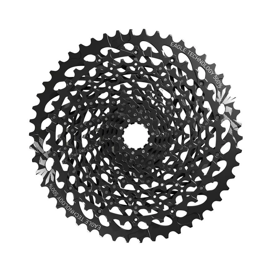 La cassette de vélo Sram Eagle GX propose un étagement cohérent et une denture de 10-50 idéale pour le VTT Cross-Country. En contrôle dans tous les chemins, même les plus escarpés, le cycliste dispose grâce à la structure robuste et légère en aluminium, une facilité déconcertante de changement de vitesses. D’ailleurs, la technologie X-Glide 2 améliore considérablement l’opération pour un rendement parfait dans toutes les situations. Une valeur sûre pour votre transmission mono plateau Eagle 12 vitesses !