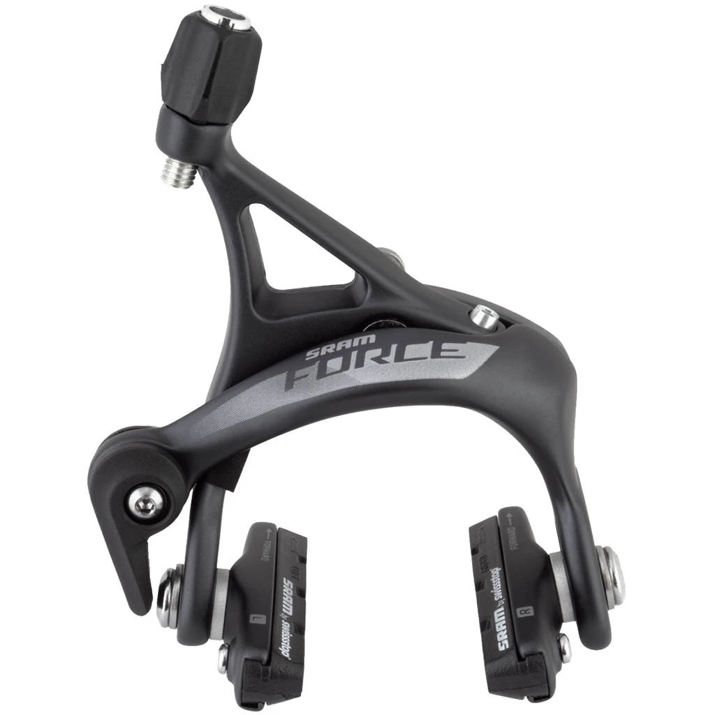 L’étrier de frein arrière Force AXS de SRAM apporte la fiabilité du freinage mécanique et l’efficacité du groupe sans fil Force eTap AXS. Il confère plus de marge de manœuvre pour les pneus jusqu’à 28C.