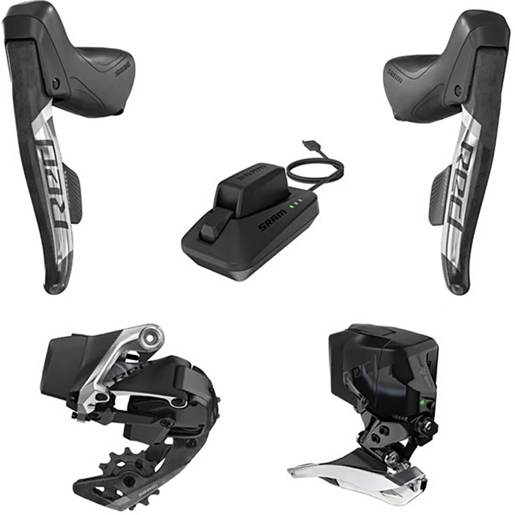 En parallèle, les leviers disposent d’un réglage optimisé en fonction de la taille des mains. Totalement connectée, cette transmission présente seulement les composants électroniques (manettes/dérailleurs/batteries et chargeur et se paramètre via l’application Sram AXS !