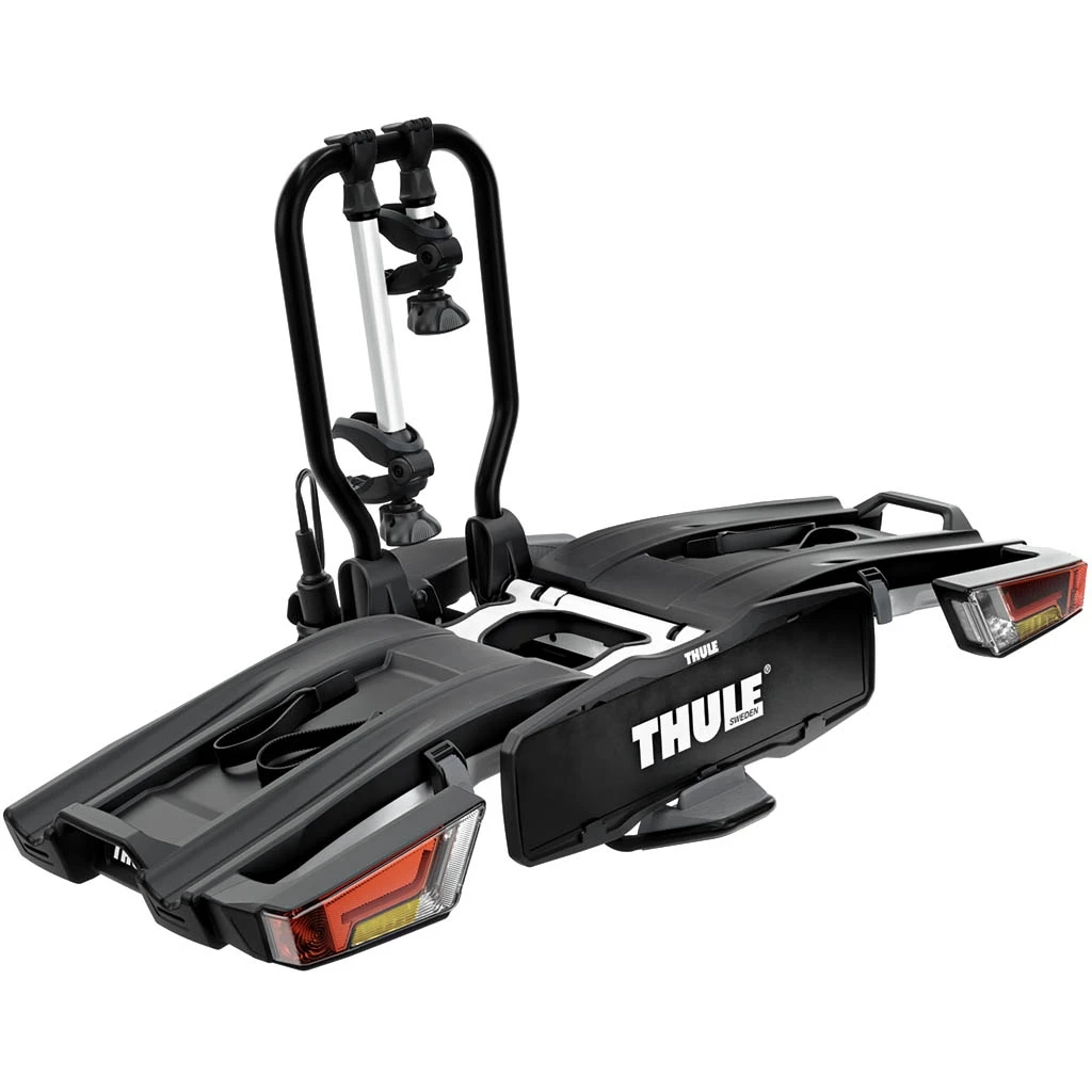 Ce porte vélos est entiÚrement pliable pour un montage, une utilisation et un rangement faciles. Il possÚde une grande capacité de chargement permettant le transport de vélos électriques et de VTT. Grùce aux bras de fixation amovibles avec limiteur de couple de serrage Thule AcuTight verrouillable, qui émet un clic lorsque le serrage optimal est atteint.