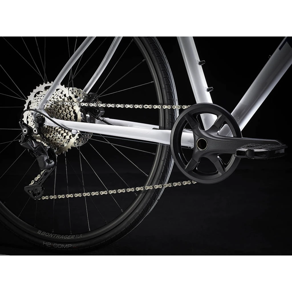 Le TREK FX 3 Disc, c’est le fitness à la portée de tous. Offrant à la fois la vitesse d’un vélo de route et le confort et la polyvalence d’un vélo de ville, ce VTC sportif a été créé pour prendre un plaisir maximal à vélo. Conçu pour convenir à une multitude d’utilisateurs, Le FX 3 disc rassemble tous les éléments clés d’un bon vélo fitness à savoir : un cadre en aluminium et une fourche en carbone légère, une transmission SHIMANO efficace avec 1 plateau et 10 vitesses pour affronter les pentes les plus raides, des freins à disques hydrauliques pour un contrôle parfait du vélo et enfin la possibilité d’y monter une large gamme d’accessoires tels que porte bagage, panier, gardes boue, siège bébé… Des balades de remise en forme jusqu’aux promenades du dimanche en passant par les déplacements au travail et les courses, le FX 3 Disc deviendra vite votre vélo de prédilection.